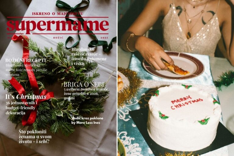 Svake godine, negdje između prvih lampica i popisa obaveza koji se neprestano produžuje, osjetimo isti pritisak. Da sve mora biti lijepo. Uredno. Posebno. Savršeno. A istina je da rijetko jest. Zato je Božićni Supermame Magazin nastao iz jedne drugačije potrebe – potrebe da stanemo. Da budemo iskrene. Da si priznamo da je u redu ako nemamo sve pod kontrolom. Ovo izdanje posvećujemo svima nama koje ponekad više razmišljamo o tome što još nismo stigle, nego o onome što već jesmo. Mamama koje balansiraju emocije, obitelj, posao i vlastita očekivanja. Ženama koje žele blagdane s manje savršenstva, a više sebe. Na ovim stranicama pronaći ćete osobne kolumne koje se čitaju polako, intervjue koji diraju tamo gdje je najtiše, teme o mentalnom zdravlju, majčinstvu, tijelu, darivanju, odnosima i tradicijama koje svjesno biramo…