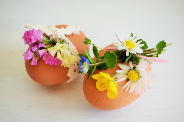 Jaja vratite u njihove kutijice, ukrasite ih cvijećem, što prirodnije to ljepše. 🙂