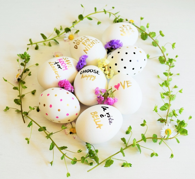 Na jajima možete napisati najdraži citat, napisati nekome poruku, ili nečije ime (idealno za dekoraciju uskršnjeg stola i raspored sjedenja gostiju).