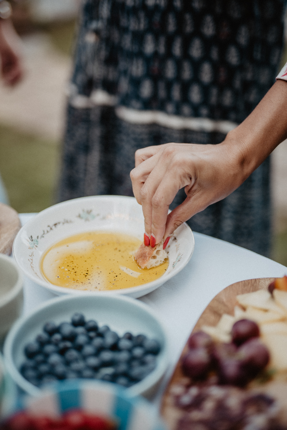 Dočekalo nas je bogato predjelo prepuno narezaka, sira i voća. No glavna je poslastica bio kruh babe Ivke. Dok smo ga točale u preukusno maslinovo ulje, slušale smo priču o tome koliko su vremena Ana i Milivoj, vlasnici Purexa, utrošili i koliko istraživanja napravili i radionica prošli kako bi dobili baš onakav kruh kakvog se sjećaju iz svoga djetinjstva, napravljen od samo četiri osnovne namirnice. Mame je također oduševio kukuruzni, te sočan integralni kruh.