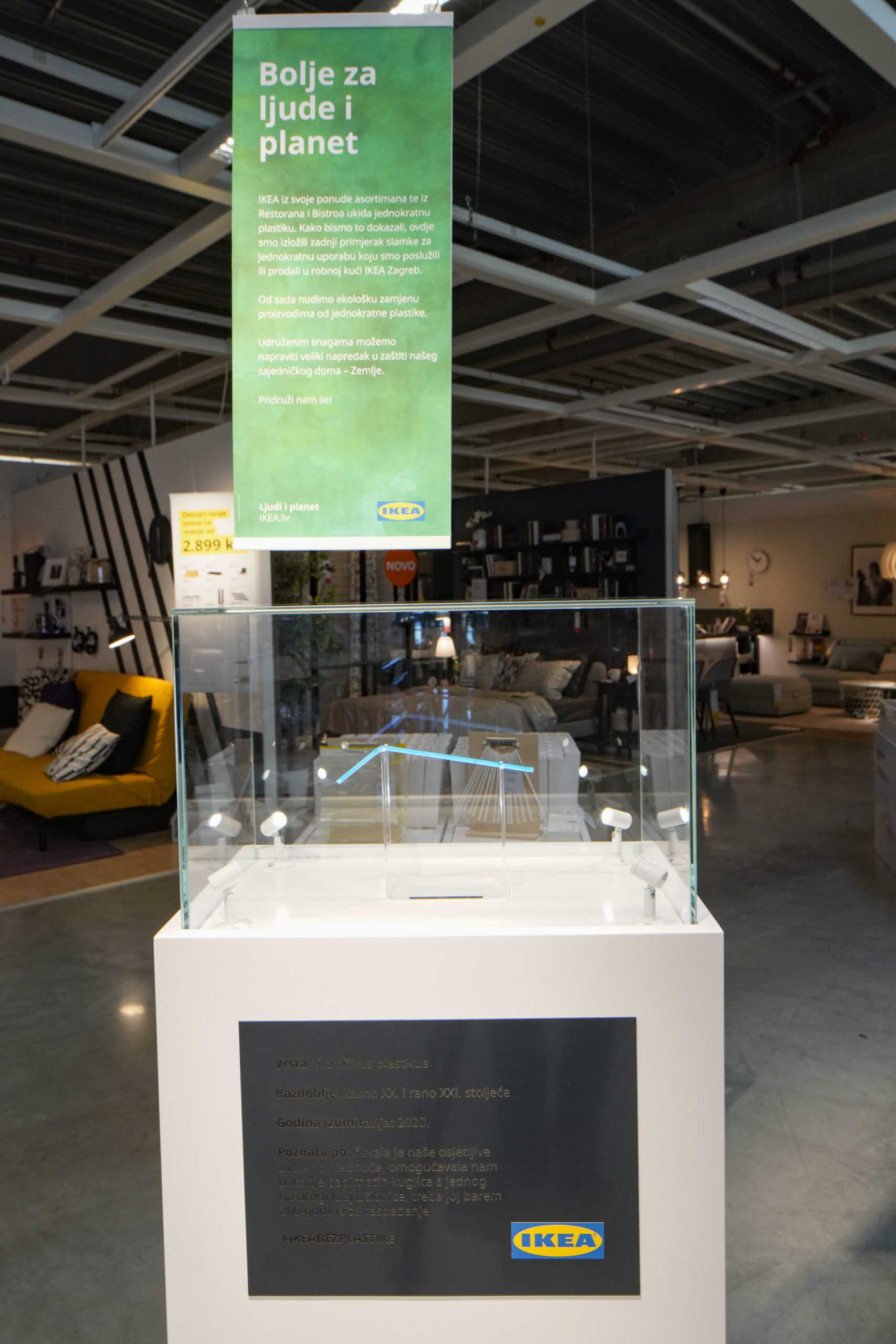 Kako bi doprinijela očuvanju okoliša te stvaranju pozitivnog utjecaja na ljude i planet, IKEA Hrvatska je iz svoje ponude ukinula jednokratne plastične proizvode. Tim povodom je u robnoj kući IKEA Zagreb u četvrtak, 13. veljače, u muzejskoj vitrini izložen posljednji primjerak „izumrle“ plastične slamke.