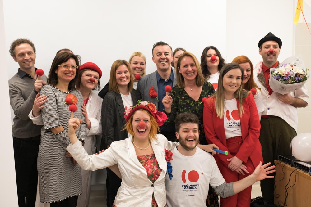 Tijekom 10 godina aktivnog rada, ovi educirani umjetnici donijeli su radost i osmijehe na lica više od 160.000 djece i starijih ljudi diljem Hrvatske, a cilj udruge je i u budućnosti nastaviti osnaživati one koji se nalaze u tužnim i bolnim životnim situacijama, vraćajući im osjećaj radosti i optimizma. U znak podrške radu CRVENIH NOSOVA klaunovadoktora u KBC-u su se okupili brojni dionici zdravstvenog sustava te predstavnice Ministarstva zdravstva i Grada Zagreba.
