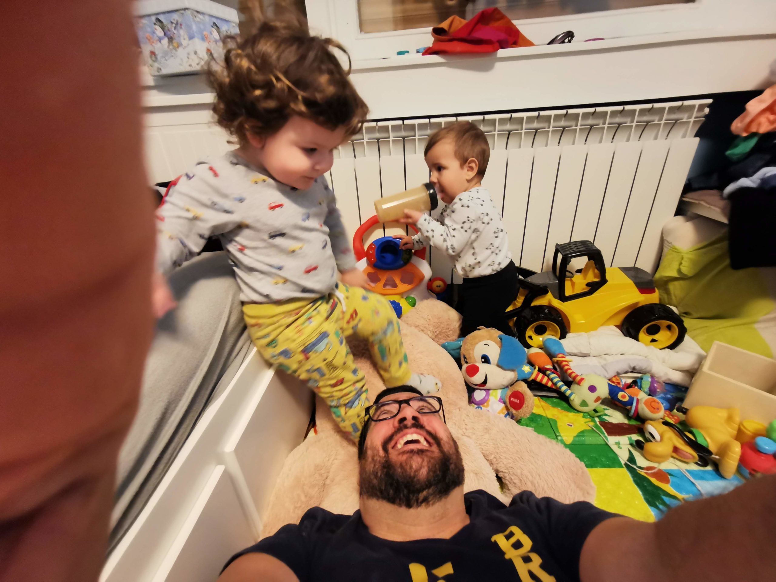 E da, tu postaje zanimljivo – tuširanje kad si sam doma s malim djetetom. Ako ga pustiš slobodnog, moji sinovi otvaraju vrata tuš kabine i ulaze, a kako su već okupani i obučeni, baš i nije neka fora. Gora varijanta je penjanje na bide i vađenje čepa iz sifona i guranje istoga u usta, bljuv! U tom slučaju hranilica postaje multipraktik: hranilica, zatvor, igraonica itd.
