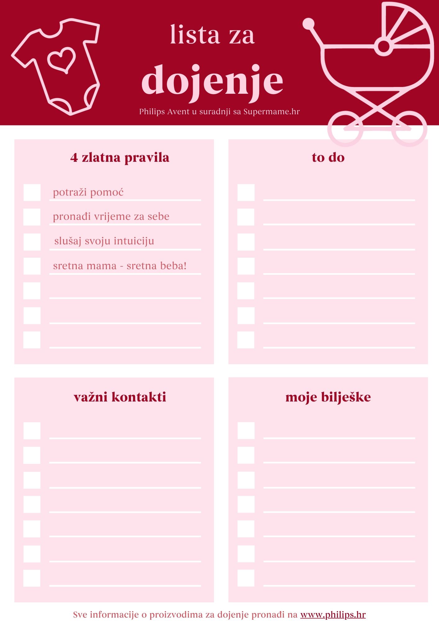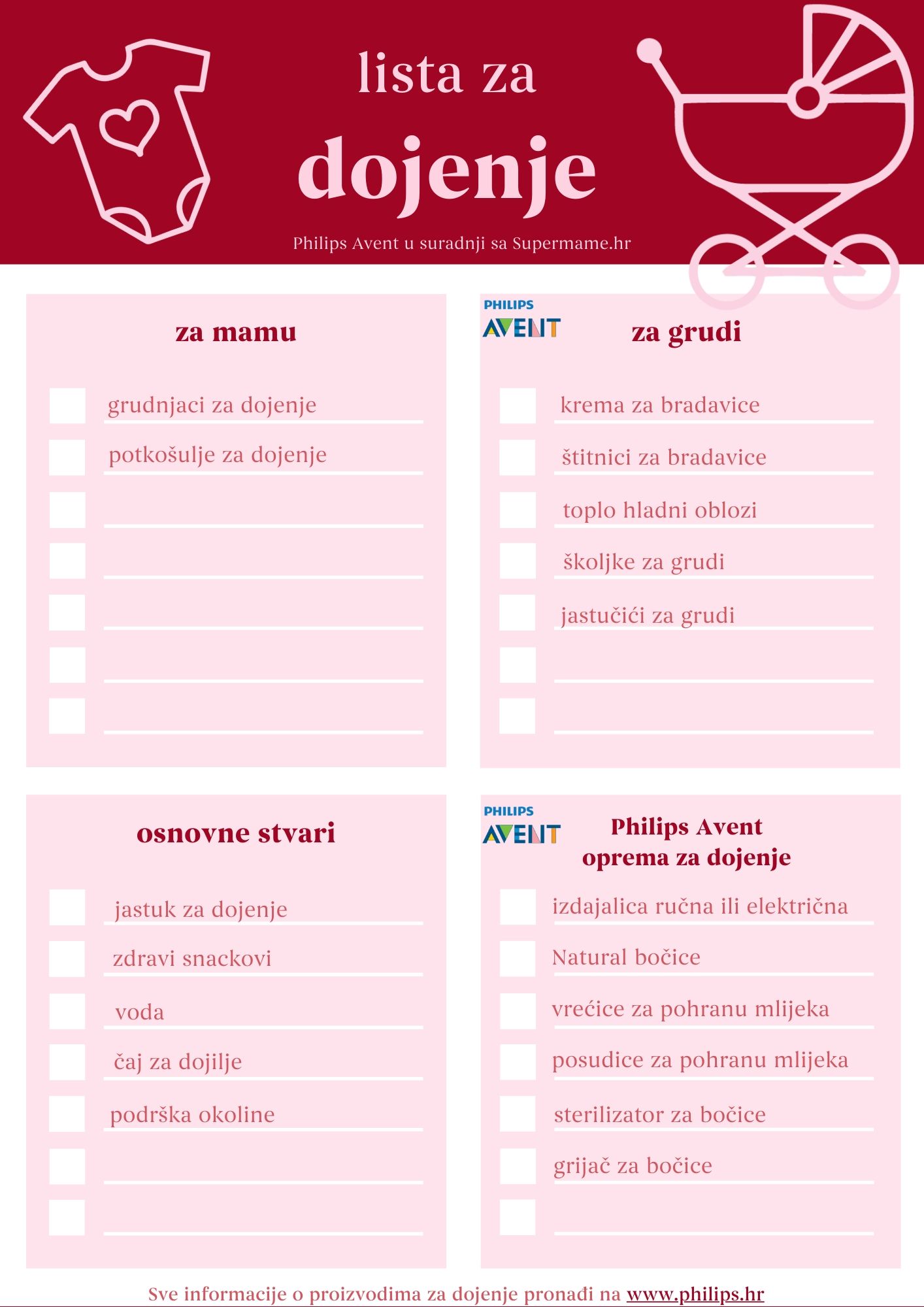 Philips Avent i Supermame poklanjaju vam listu za dojenje koja će vam olakšati pripreme za prve dane majčinstva.
