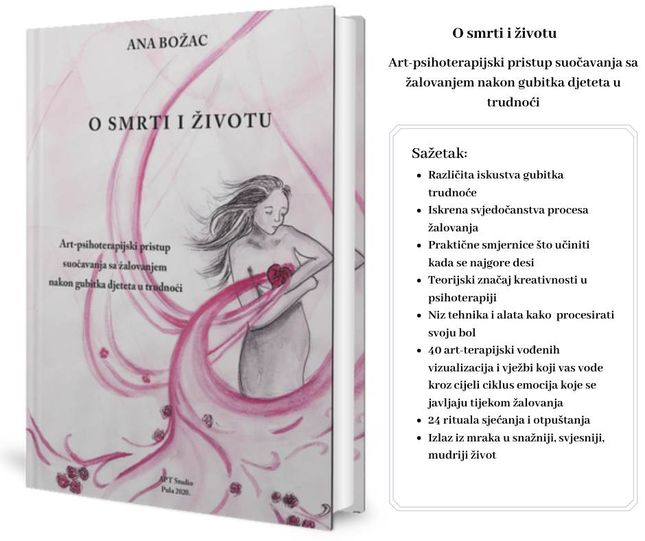 Iako svaka četvrta žena izgubi trudnoću, u društvu se jako malo zna i priča o tome. Knjiga „O smrti i životu: Art-psihoterapijski pristup suočavanja sa žalovanjem nakon gubitka djeteta u trudnoći“ autorice, psihologice i psihoterapeutice Ane Božac svjedoči o iznimno osjetljivoj temi velike društvene značajnosti, nažalost zanemarene. Svjedoči o gubitku djeteta u trudnoći i o nastavku življenja nakon tog kobnog događaja.
