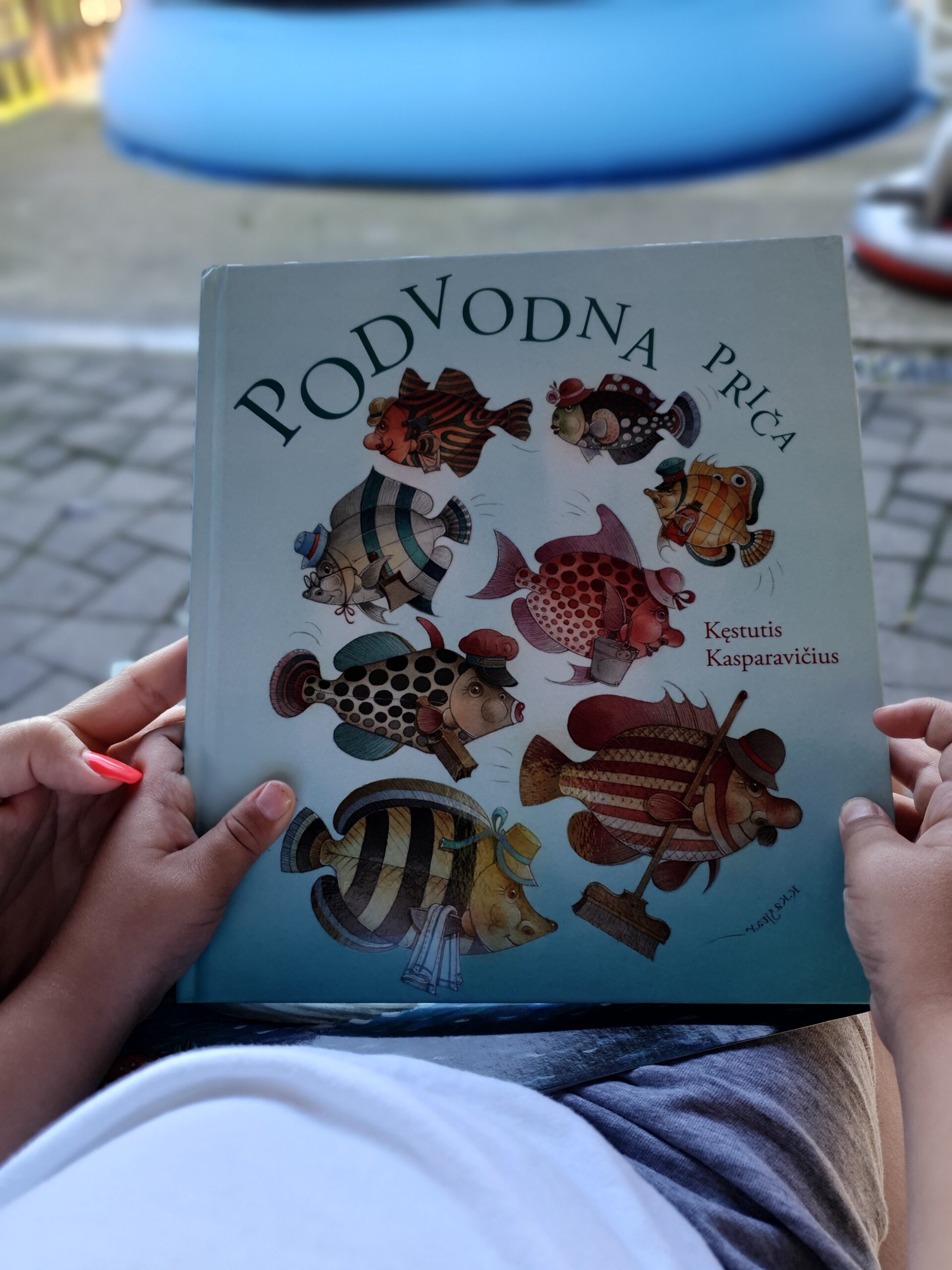 Ovu bismo slikovnicu odabrali za večernje čitanje. Zanimljive ribe nastale u autorovoj bogatoj mašti susreću se svaka sa svojim poslovima u moru. Skakuću i vraćaju sunce na mjesto, prevrću brodove ili vežu otoke koji inače skakuću tko zna kamo. Pratit ćete čudne i neobične pustolovine vođene maštom. Ono što je nemoguće, postat će moguće u Podvodnoj priči. A kako je ribicama pomogla hobotnica? To ćemo ostaviti za iznenađenje.