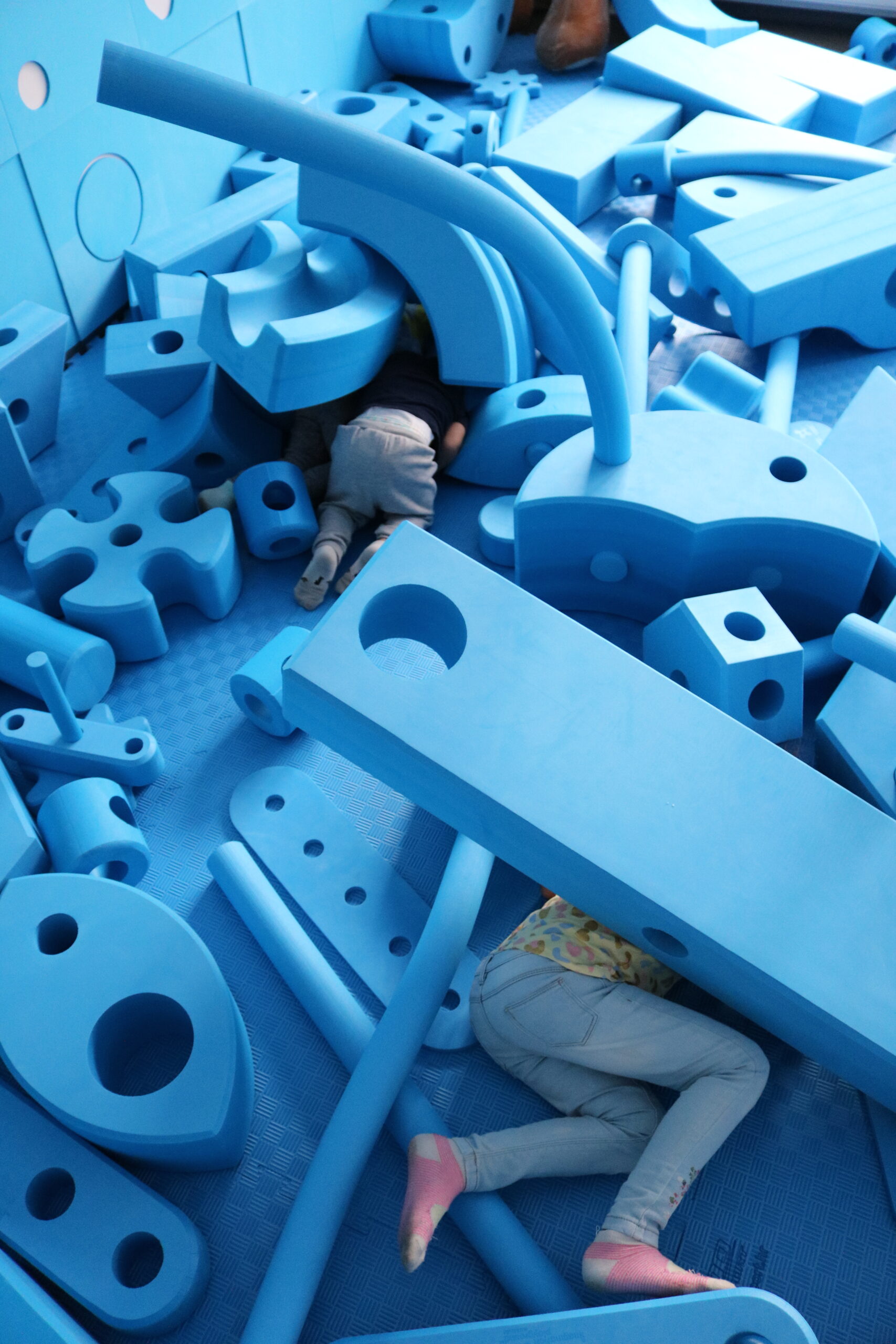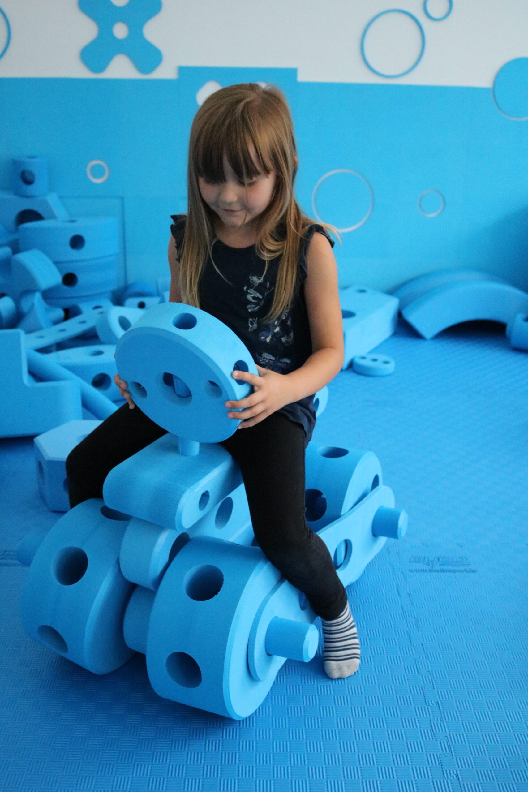 Ti plavi spužvasti elementi različitih oblika i veličina koje vidite na fotografijama potiču djecu na slaganje, kombiniranje i isprobavanje, stimulirajući kreativno i strateško razmišljanje, a usput se odlično zabavljaju.